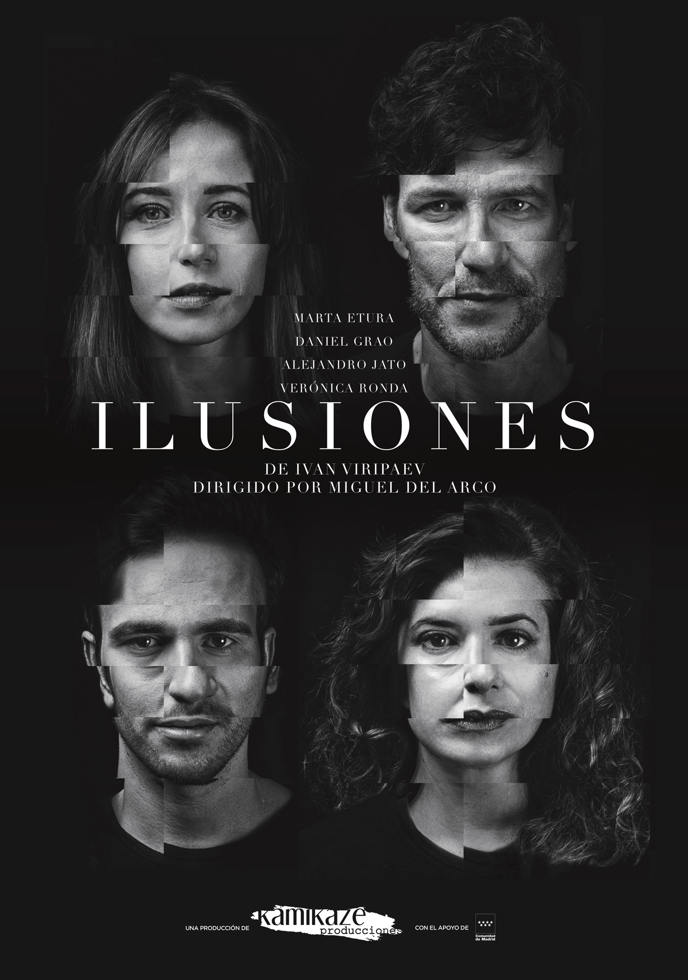 A través de las historias entrelazadas de dos parejas casadas, Ilusiones revela las paradojas de la pasión y la muerte, la lealtad y la traición, la verdad y la ficción. Miguel del Arco dirige a Marta Etura, Daniel Grao, Alejandro Jato y Verónica Ronda en esta oscura y cómica disección del verdadero amor. Bienvenidos a Ilusiones, una comedia existencialista.