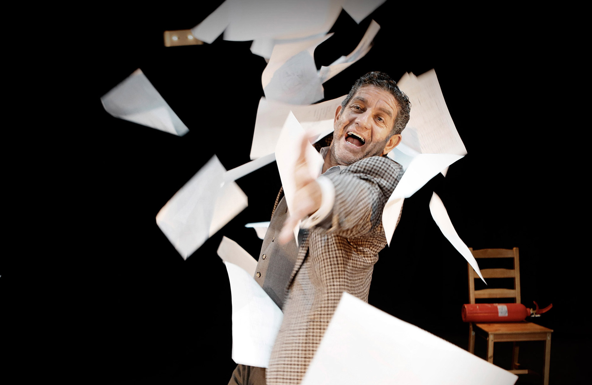 El director Antonio Simón se sirve con acierto de una escenografía minimalista y de una iluminación precisa para poner en pie Yo, Fueurbach. La diferencia de edad entre los dos protagonistas provoca tensión pero también humor. Dos épocas y dos maneras diferentes de hacer se enfrentan así en escena. Desde el patio de butacas somos testigos de la pesadilla de un actor que envejece. Lograr un papel parece ser la única clave para su supervivencia. La genialidad y la locura están emparentadas en un personaje que es cómico y trágico al mismo tiempo. El lenguaje y la representación son sus únicos medios de supervivencia. Hay algo de desesperada comicidad en el ambiente. El intérprete se revela contra el paso de los años en una lucha patética. “He sido convocado para eso, para que usted me vea, para que pueda darse cuenta de si lo que sé hacer y lo que soy corresponde a lo que usted espera”, afirma Feuerbach. Y ese aprender a verse de nuevo y a reclamar una segunda oportunidad se convierten en el eje central de la obra.